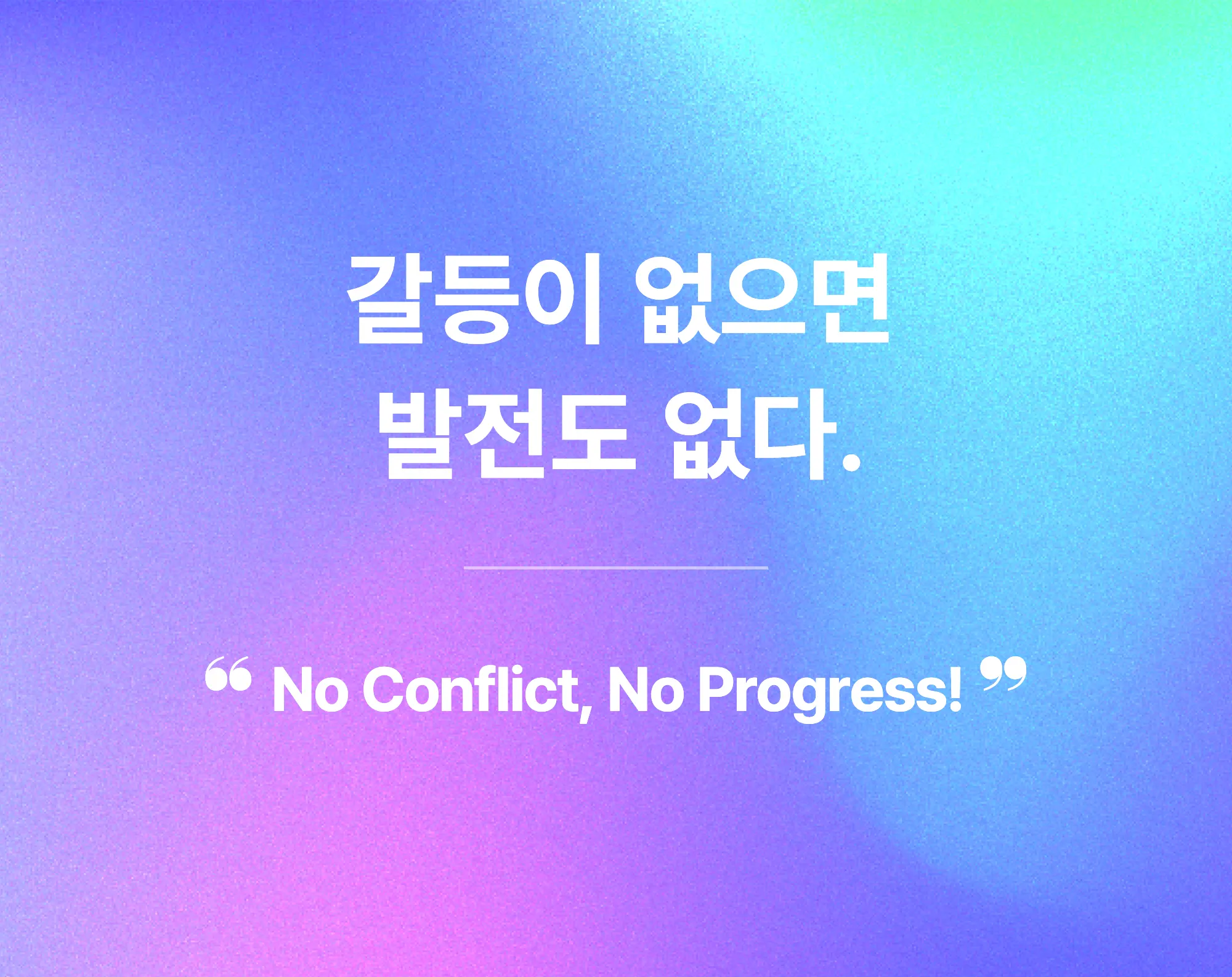 갈등을 부정적이 아닌 성장의 발판으로 여깁니다. 서로 다른 의견과 견해를 통해 새로운 인사이트를 발견하며, 건강한 의사소통과 협력을 통해 조직의 발전을 이끕니다. 갈등을 기회로 삼아, 더 나은 조직으로 나아갑시다.