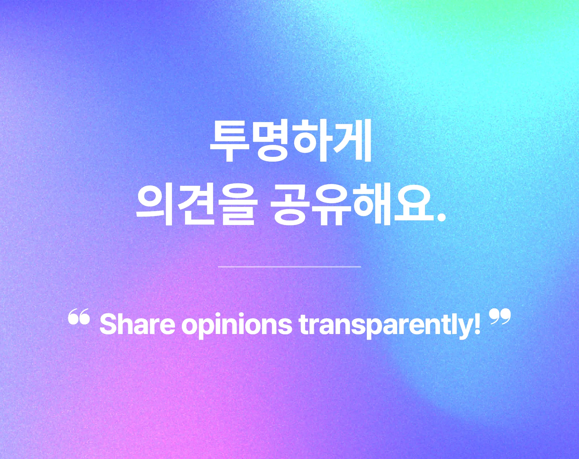 투명한 의사소통으로 조직 발전을 이끌고자, 모든 구성원이 소통하는 과정에서 서로의 의견을 솔직하게 공유하고, 열린 마음으로 경청합니다. 이를 통해 조직 내 신뢰와 협력을 강화하며, 유대감을 형성합니다.