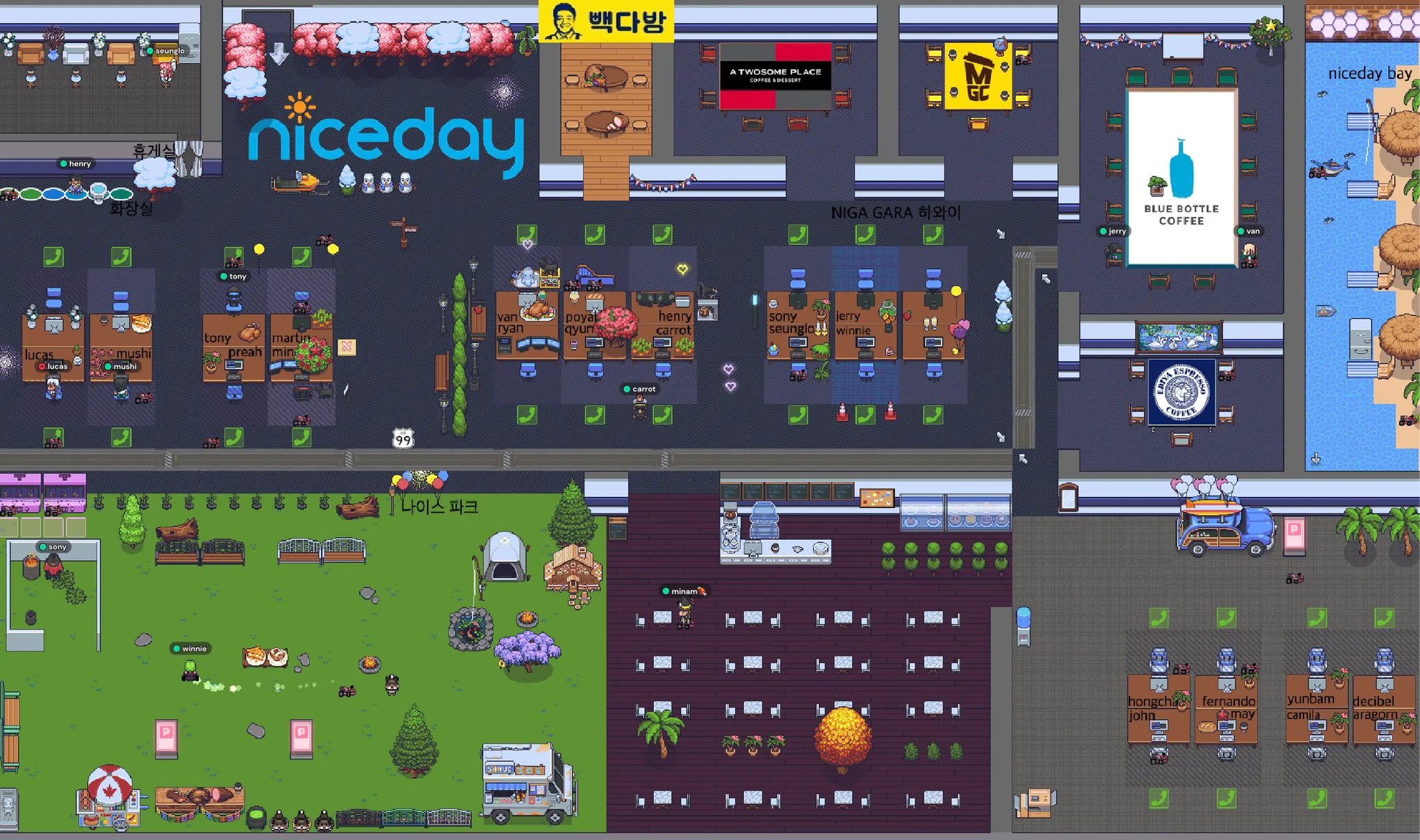 근무 간 slack 메신저와 gather town 오피스를 사용하며, 다음의 기본 사항을 준수해 주세요.